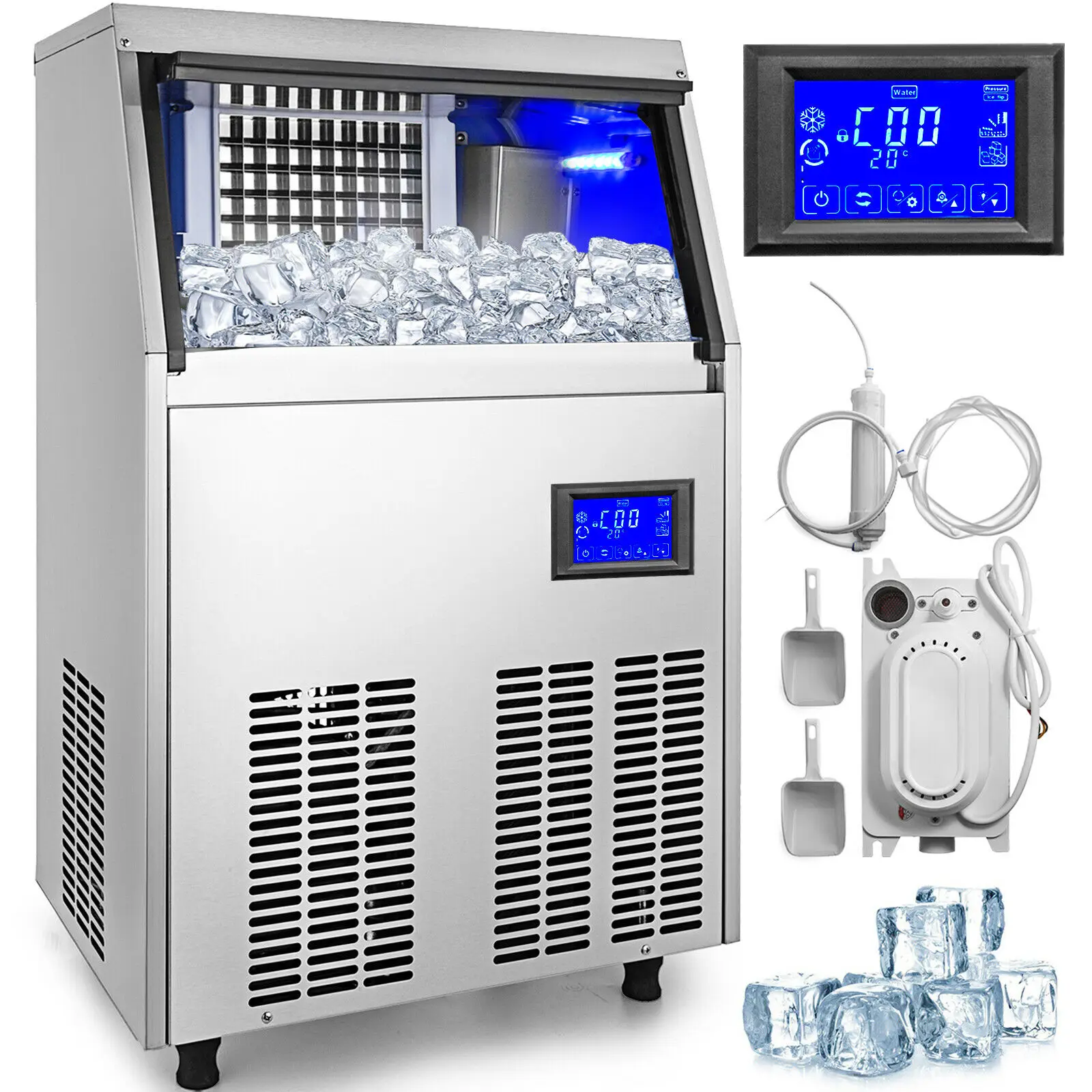 . Made of stainless steel our commercial ice cream machine is simple to clean and built to last. VEVOR Commercial Ice Maker 220V Stainless Steel Ice Cube Maker Machine 132LBS24H Ice Making Machine Intelligent LCD Control Panel with Water Drain Pump for Home Bars Restaurants. Control it all with a simple touch screen display to set clean freeze and stop everything this machine has to offer.